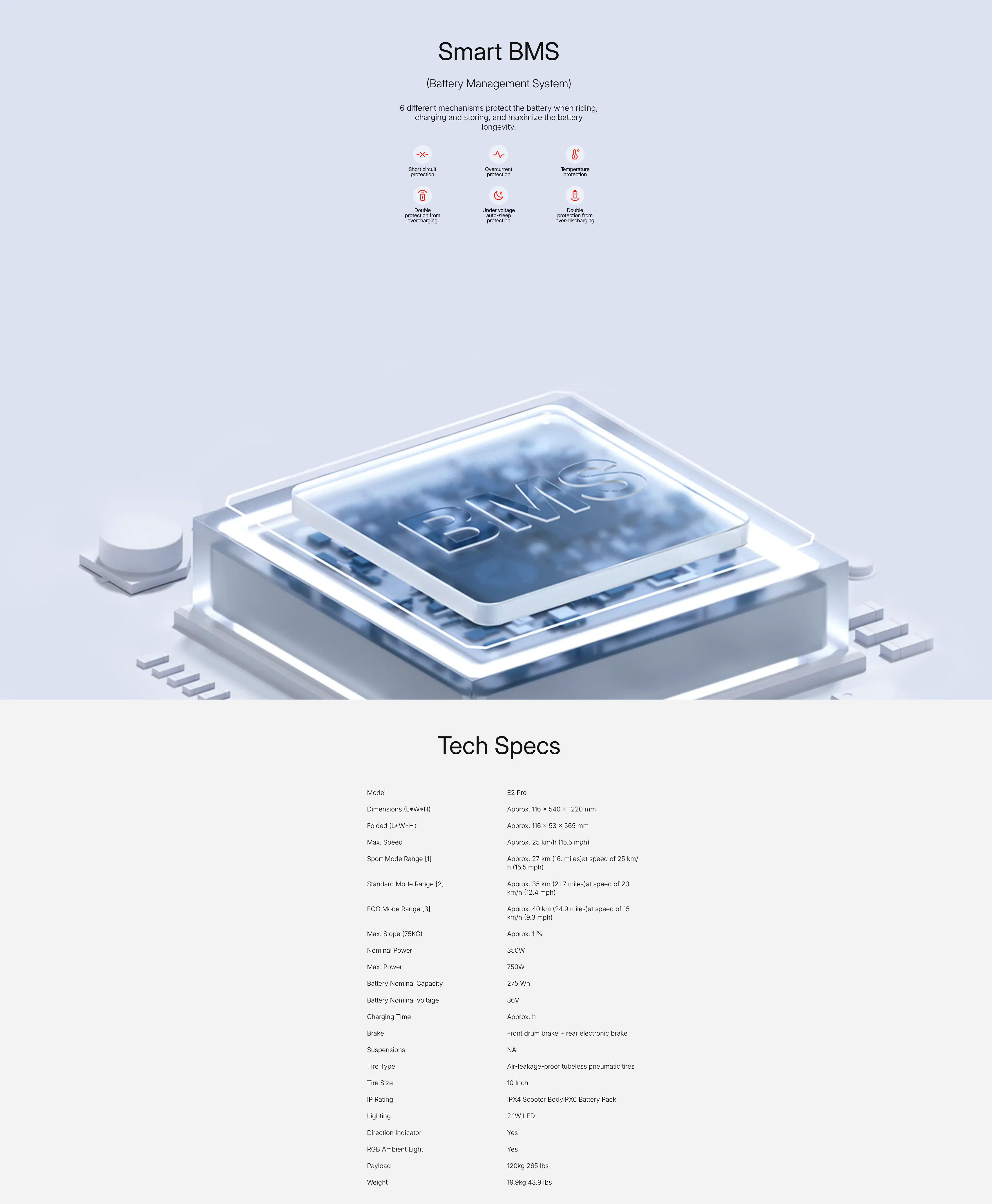 Battery Management System | Protection against overvoltage/undervoltage/short circuit/over current/over temperature | |